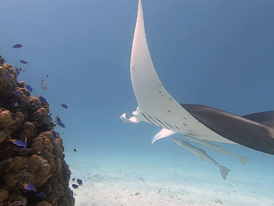 Explore the Tuheiava Pass and the Manta Ray spot and discover colossal schools of jacks, surgeonfish, parrotfish, napoleon fish, etc. Dive with «Mokarran» hammerhead sharks, tiger sharks, blacktip sharks, get up close to groups of manta rays, or venture into the shark hole. See for yourself and come travel to the most fish-rich lagoon in the world, described by Cousteau, with the Raie Manta Diving center. Video montage, produced by Flavia Flinois.